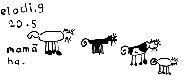 Dès qu’il commence à assembler les sons, l’enfant reçoit une feuille de papier sur laquelle est écrit un message en alfonic, qui lui demandera de réaliser un dessin précis.