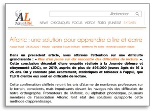 Les raffinements de notre orthographe ne sont pas pour rien dans ces difficultés. Mais l’orthographe est-elle une malédiction ? Non ! Notre cercle a donc exposé la solution de l’alfonic à ActuaLitté, qui a eu l’amabilité de publier notre tribune ce 24 juin 2020 : « Alfonic, une solution pour apprendre à lire et écrire ». Nous remercions ActuaLitté de nous avoir donné la parole.