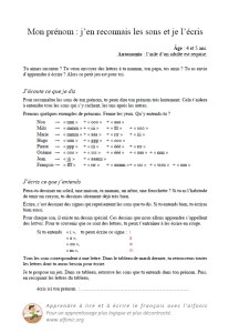 Mais le lien entre l’oral (les sons) et l’écrit (les lettres, ou les groupes de lettres) devient beaucoup difficile à percer spontanément si l’enfant s’appelle Amandine, Alexandre, Anne-Françoise ou Jean-Charles. C’est là que l’apprentissage au moyen de l’alfonic prend tout son sens. Votre enfant sera tout heureux d’écrire son nom, même s’il sait qu’il utilise une graphie « provisoire ».