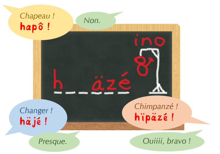 Ce jeu fonctionne bien pour réviser l’orthographe. Mais nous proposons aujourd’hui une petite variante qui permet d’isoler tous les phonèmes successifs d’un mot. Dans sa version traditionnelle, celui qui voudra faire deviner le mot oiseau devra écrire six barres, que les participants devront remplir avec les six lettres qui composent ce mot. Dans notre version, ce même mot wazo compte quatre phonèmes que le maître des phonèmes notera en alfonic.