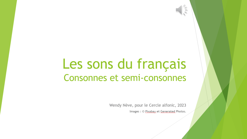 C’est la raison pour laquelle nous proposons une présentation orale aujourd’hui. Voici une vidéo qui passe en revue toutes les consonnes et les semi-consonnes que l’on entend en français.