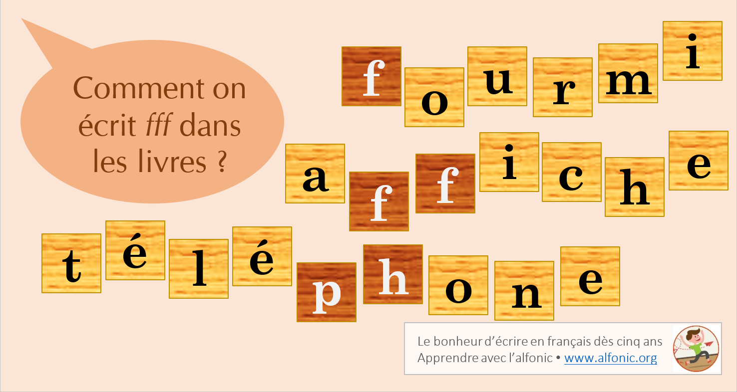 Une fois que les phonèmes sont bien identifiés, oralement et par écrit (avec les lettres de l’alfonic), on passe à la lecture et à l’écriture orthographiques. Peu à peu, l’orthographe remplacera l’alfonic. Et les étudiants découvriront les graphies multiples d’un même phonème. Leçon après leçon, on pourra expliquer que :